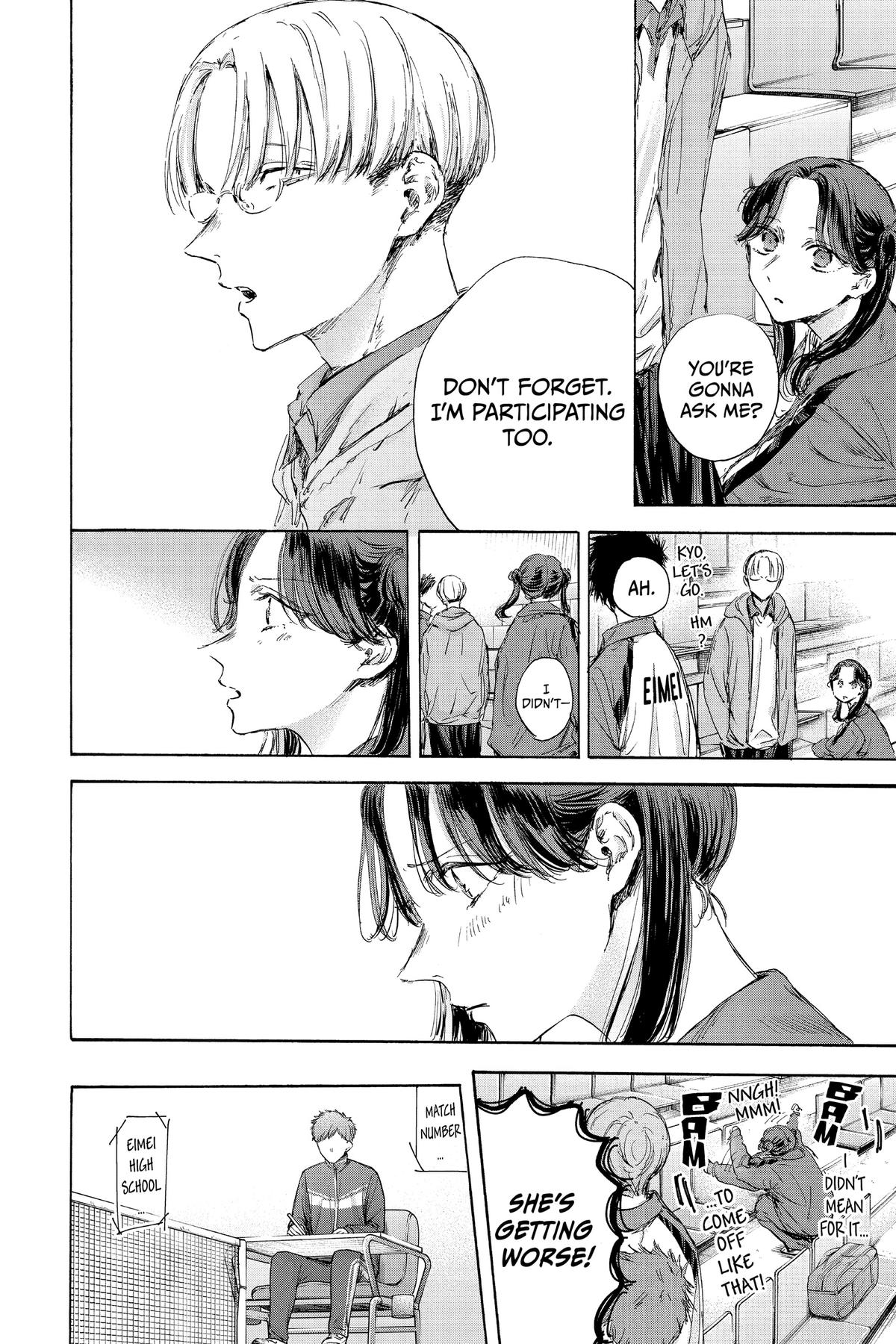 This chapter continues the incredible journey in Blue Box, showcasing the intense competition and character development that has made this series a global phenomenon. Follow the story as it unfolds with stunning artwork and compelling narrative.